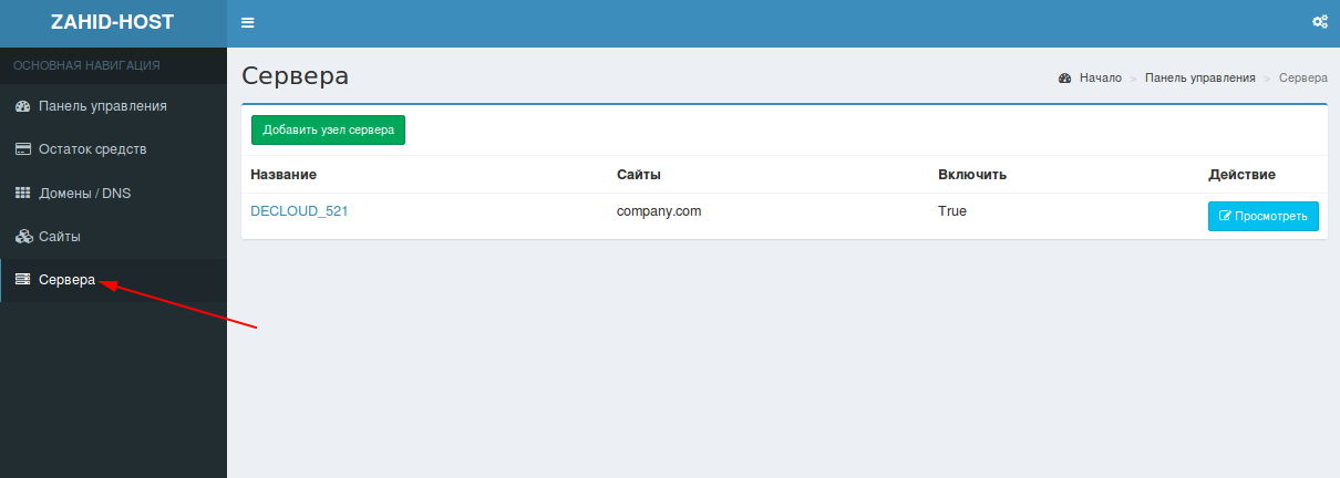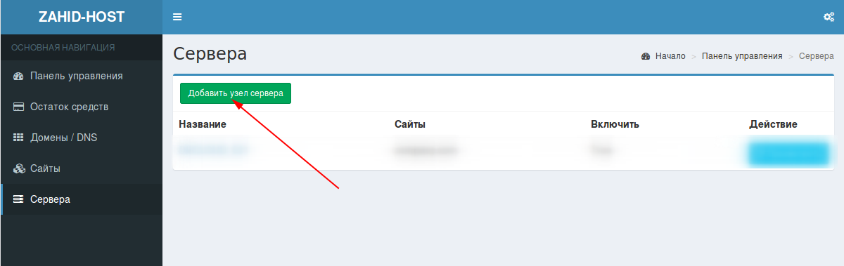 Нажмите Добавить узел сервера