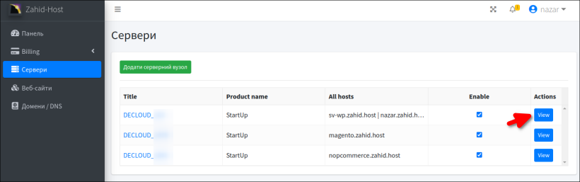 Всі дані для доступу до сервери є на вкладці сервера в панелі керування хостингом.